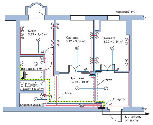 Так же не стоит относить всю проводку к одной группе. К примеру, ванную комнату лучше делать отдельной группой т.к. данная группа считается одной из самых опасных, по причине высокой влажности.